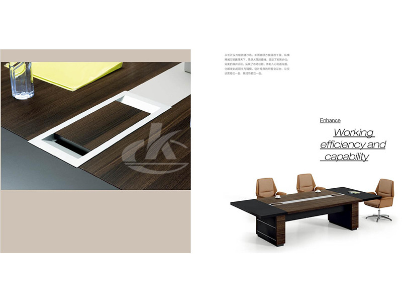 板式會議桌采用與主管桌相同的設計元素,呈現(xiàn)辦公空間整體性;模塊式桌面咨詢平臺,獨設的電路檢修門,滿足現(xiàn)代會議設備需求。