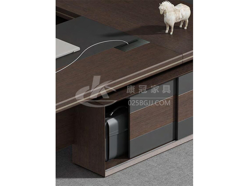 此款老板桌以現(xiàn)代風(fēng)格結(jié)合傳統(tǒng)厚重的設(shè)計(jì)體現(xiàn)了現(xiàn)代、時(shí)尚、實(shí)用,但又有朝氣息,領(lǐng)資系列方正的外觀給人以穩(wěn)重大氣感,側(cè)柜有效結(jié)合收納與走線功能;