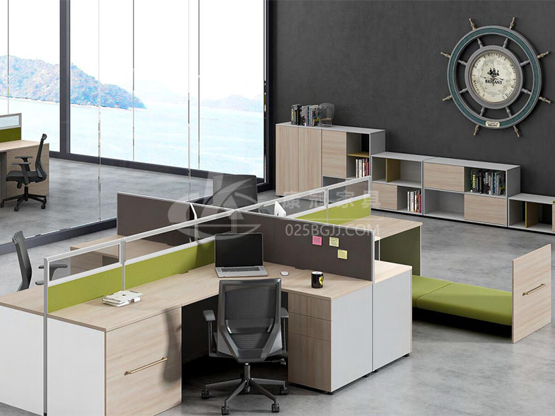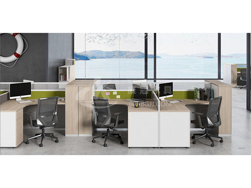 屏風(fēng)辦公桌采用十字組合搭配L型臺(tái)面,副臺(tái)采用固定柜滿(mǎn)足個(gè)人收納需求,產(chǎn)品組合可應(yīng)用于四人工作小組的辦公空間;
